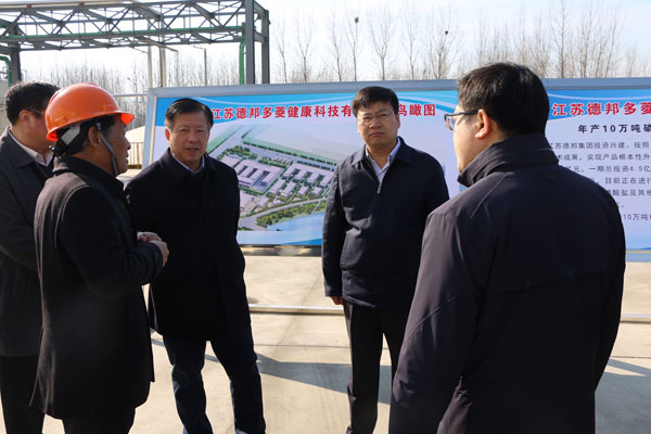 3月8日上午,市委常委、市長方偉攜市委秘書長韓尚富、市發改委、市工信局、市自然資源和規劃局、市生態環境局主要負責人及東海縣領導相關領導一行蒞臨江蘇德邦多菱健康科技有限公司廠區,督查市級重點項目推進工作,并與集團公司董事長趙祥海進行親切交談。在聽取集團公司董事長關于產業布局、項目建設和經營效益等相關情況匯報后,方偉勉勵企業要堅定發展信心、樹立高遠志向,大力推進創業創新,頑強拼搏,不懈努力,推動企業做大做強,力爭項目早日建成投產,為地方經濟發展再做新貢獻。他強調,東??h相關部門要進一步加大幫扶企業力度,抓緊落實企業相關手續的辦理,推動有關項目早日建成投入運行。同時他也表示,將抓緊推動德邦老廠區地塊的掛牌出讓工作,為德邦的整體搬遷項目建設提供支持。
